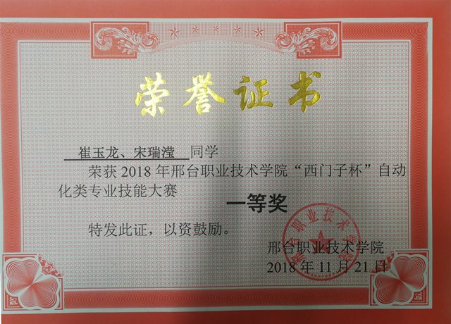 从17日上午八时开始,历时7个小时的比拼,参赛选手经过“现场配盘接线、现场编程及功能实现”两个环节进行对决,评委组依据“接线工艺、编程功能调试”两个方面指标进行测评,经过激烈角逐,电气本162班崔玉龙、宋瑞滢凭借扎实的配盘接线技能及编程技能荣获赛项一等奖;电气165班段立男、刘超民,电气163班代珅、邹仁杰荣获赛项二等奖;电气162班王英帅、王纪虎,电气172班姚振华、电气171班任岩,电气161班彭飞、郑洁义获得赛项三等奖。
