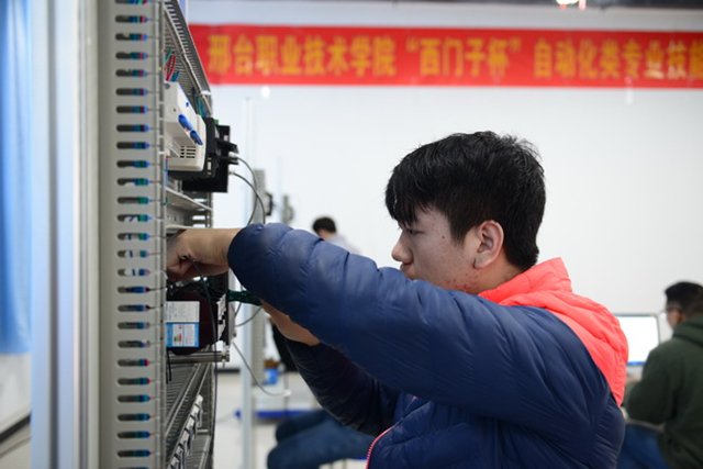 从26日上午八时开始,历时7个小时的比拼,选手们克服重重困难,经过“现场配盘接线、现场编程及功能实现、现场答辩”三个环节进行对决,评委组依据“接线工艺、编程功能调试、现场答辩”三个方面指标进行测评,经过激烈角逐,电气142班董亚非、赵轩凭借扎实的配盘接线技能及编程技能荣获赛项一等奖;气本142班王文斌、王毅超、气本141班林志博、韩博文荣获赛项二等奖;电气143班张振国、林开发、气本142班商元恒、车鹏远、气本141班赵雁博、电气156班陈帅获得赛项三等奖。