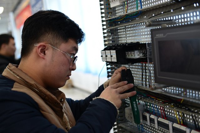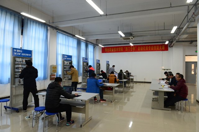 从26日上午八时开始,历时7个小时的比拼,选手们克服重重困难,经过“现场配盘接线、现场编程及功能实现、现场答辩”三个环节进行对决,评委组依据“接线工艺、编程功能调试、现场答辩”三个方面指标进行测评,经过激烈角逐,电气142班董亚非、赵轩凭借扎实的配盘接线技能及编程技能荣获赛项一等奖;气本142班王文斌、王毅超、气本141班林志博、韩博文荣获赛项二等奖;电气143班张振国、林开发、气本142班商元恒、车鹏远、气本141班赵雁博、电气156班陈帅获得赛项三等奖。