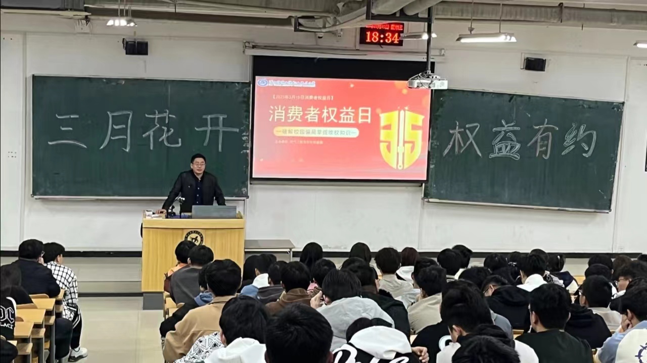 为了保护同学们的财产安全,提高同学们的防诈骗意识和维护自身合法消费权益的能力,3月15日到16日,电气工程系在C1-1阶梯教室开展了以“三月花开,相约权益”为主题的宣讲活动。辅导员老师王景辉出席本次活动,活动由李子健同学主持。
