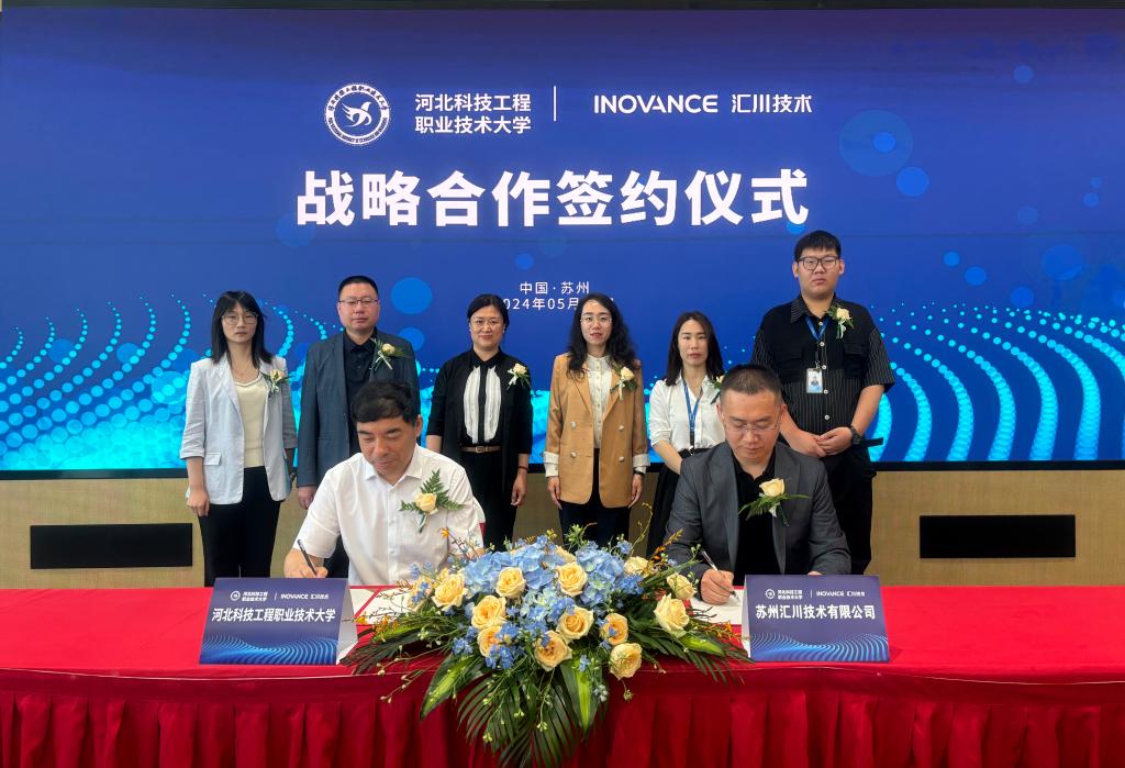 为贯彻落实党的二十大精神和中共中央、国务院《关于深化现代职业教育体系建设改革的意见》,推进卓越现场工程师培养计划,5月15日,365官网电气工程系和苏州汇川技术有限公司校企联合培养的卓越现场工程师班开班仪式在苏州汇川技术有限公司举行。365官网与汇川技术有限公司共同签署“卓越现场工程师培养”战略合作协议,并为企业工程师们颁发聘书,正式聘请他们为学校的客座教授和企业导师。