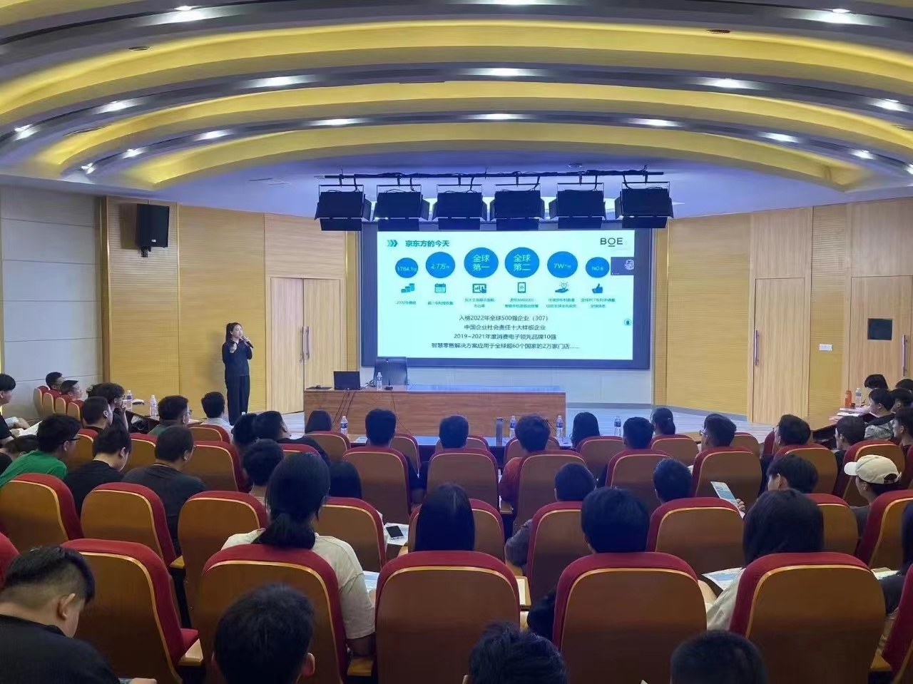 会议期间,首先由毕主任向在场人员介绍了电气工程系整体情况、对班级指导老师进行分配安排以及“工学交替”期间各个指导老师与其负责的班级所需要遵守的各项注意事项。随后,艾书记、陈主任分别向同学们强调“工学交替”的重要性与重要意义,提出要真正实现人才培养与市场需求的有效对接、学校和企业有机互动的工作机制,为毕业生开拓更多就业岗位,并鼓励同学积极参与。随后,由晶澳太阳能科技股份有限公司、台晶电子有限公司、京东方科技集团股份有限公司青岛分公司与武汉分公司的企业代表人对各自企业文化、工作环境、职业发展方向、薪酬福利等与同学进行深入交流。