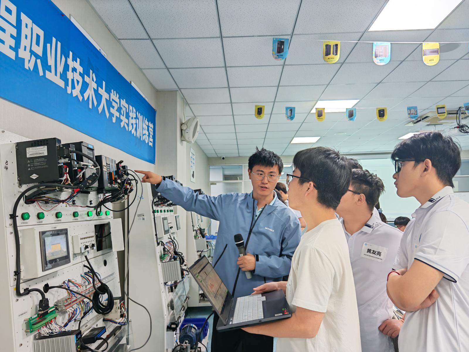 为深入贯彻党的二十大精神,奋力推进职业教育产教融合,5月26日至29日,365官网电气工程系与工业自动化领军企业苏州汇川技术有限公司在该企业园区联合开展“汇川工程实践训练营”。此次活动是365官网与该企业签署“卓越现场工程师培养”战略合作协议以来的第二期训练营活动,通过校企深度融合的创新模式,为职业本科教育实践育人搭建全新平台,助力培养符合产业需求的高素质技术技能人才。365官网卓越班19名同学参加。