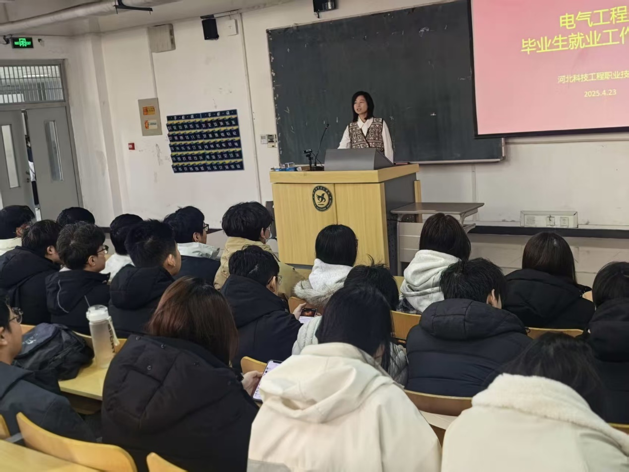 4月23日,电气工程系辅导员房倩在C2-1开展就业指导讲座,2026届毕业生180余人到场聆听。房老师为同学们梳理了近年电气行业的就业趋势,深入分析了当前就业环境下毕业生面临的机遇与挑战,并从精准把握行业需求、夯实专业技术功底、规划多元职业发展路径三个方面给出指导,引导学生树立科学的择业观与就业观。