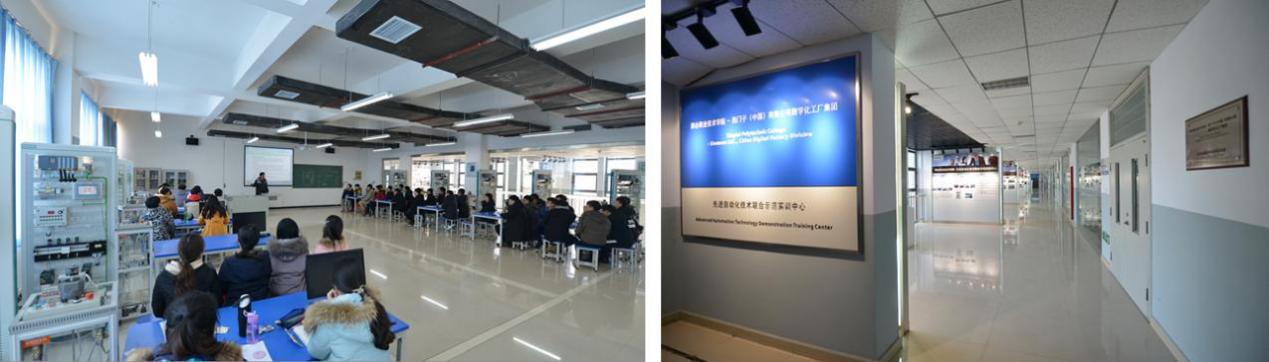 核心功能:配备多功能智慧教室10余间,支持混合式教学与翻转课堂,实现“资源推送-学习跟踪-成果反馈”全流程数字化管理。包含西门子PLC工作站、智能电网仿真平台、工业机器人集成系统等设备。