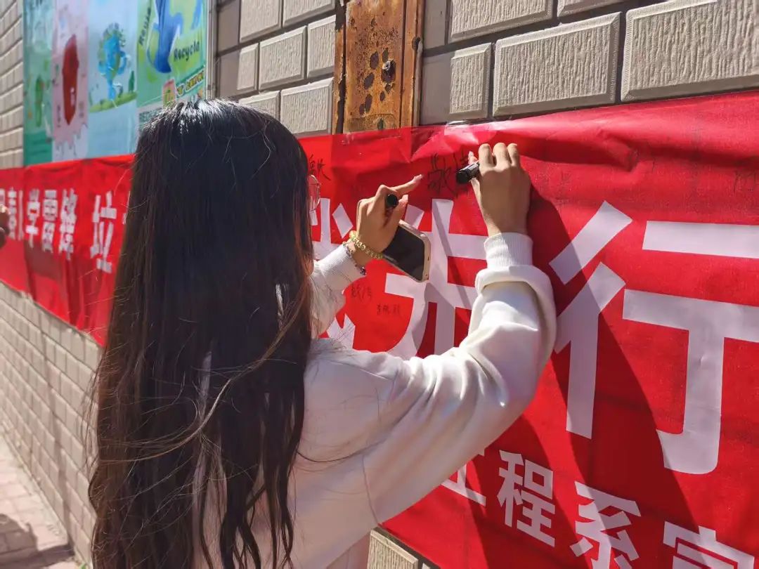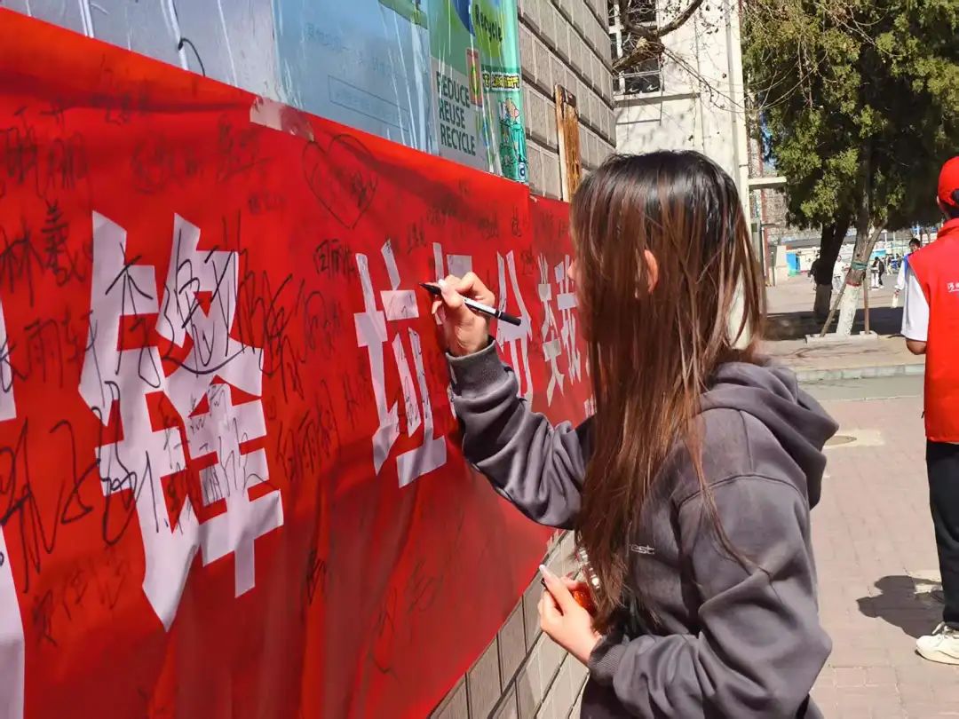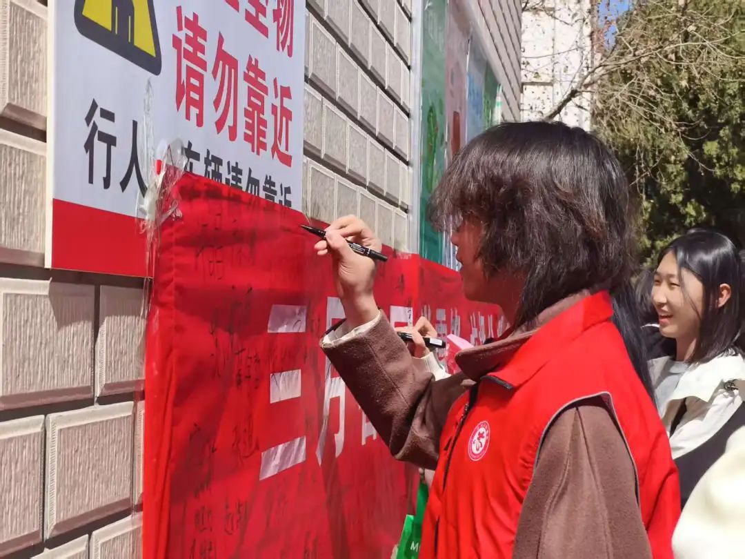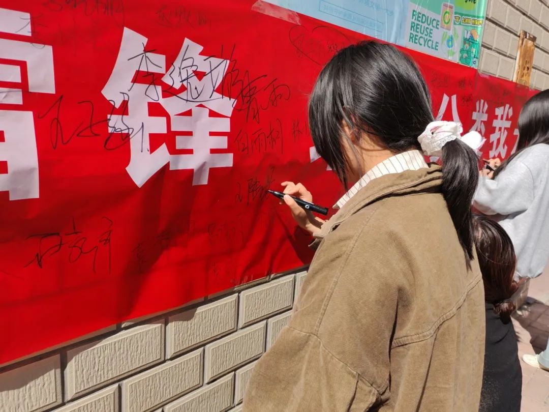 三月的暖风轻抚校园,"雷锋红"与"环保绿"在青春热烈相拥!服装工程系于3月20日中午在生活区一号楼楼下开展了“三月春风学雷锋,垃圾分类我先行”承诺签字活动,青年们执笔为誓,在印满初心的长卷上,书写新时代的文明答卷。