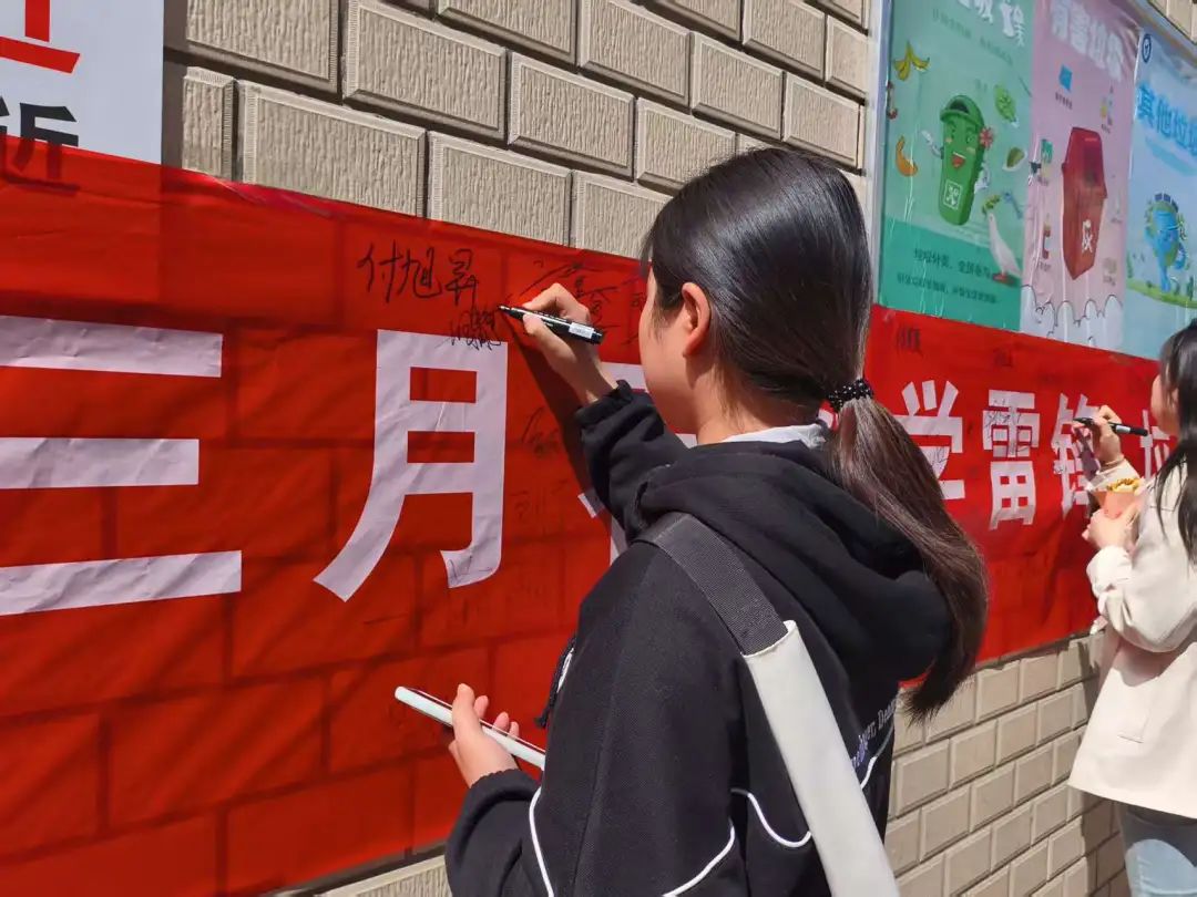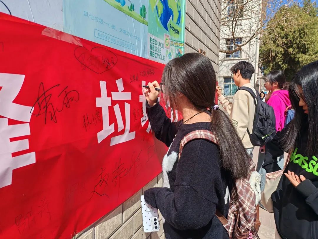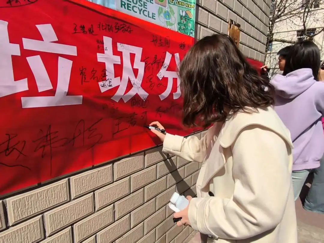 当鎏金笔尖触碰"三月春风学雷锋,垃圾分类我先行"的誓言横幅时,三百余颗跃动的心跳奏响春之交响。志愿者们的红马甲如跃动的火苗,穿梭在笑语盈盈的人潮中,将"可回收物蓝""厨余垃圾绿"的环保密码,编织进每个郑重签名的笔画里。一号楼楼前的杨柳树见证着,那些签过名的手掌,正把教室里的碎布头、画室边的颜料管,变成再生纸上的水墨丹青。