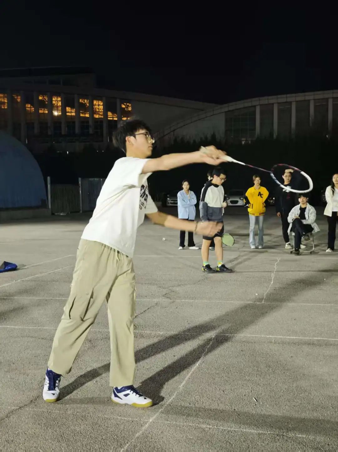 比赛中,选手们的动作流畅而精准,起跳、挥拍、收拍,一气呵成,引得观众阵阵喝彩。每一次精准的接球,都是他们长期刻苦训练的成果;每一道划过天空的弧线,都是他们对羽毛球运动的执着与热爱的见证。羽毛球在这里不仅是一项竞技运动,更成为了一座连接同学心灵的桥梁,让大家在博弈中增进友谊,共同成长。
