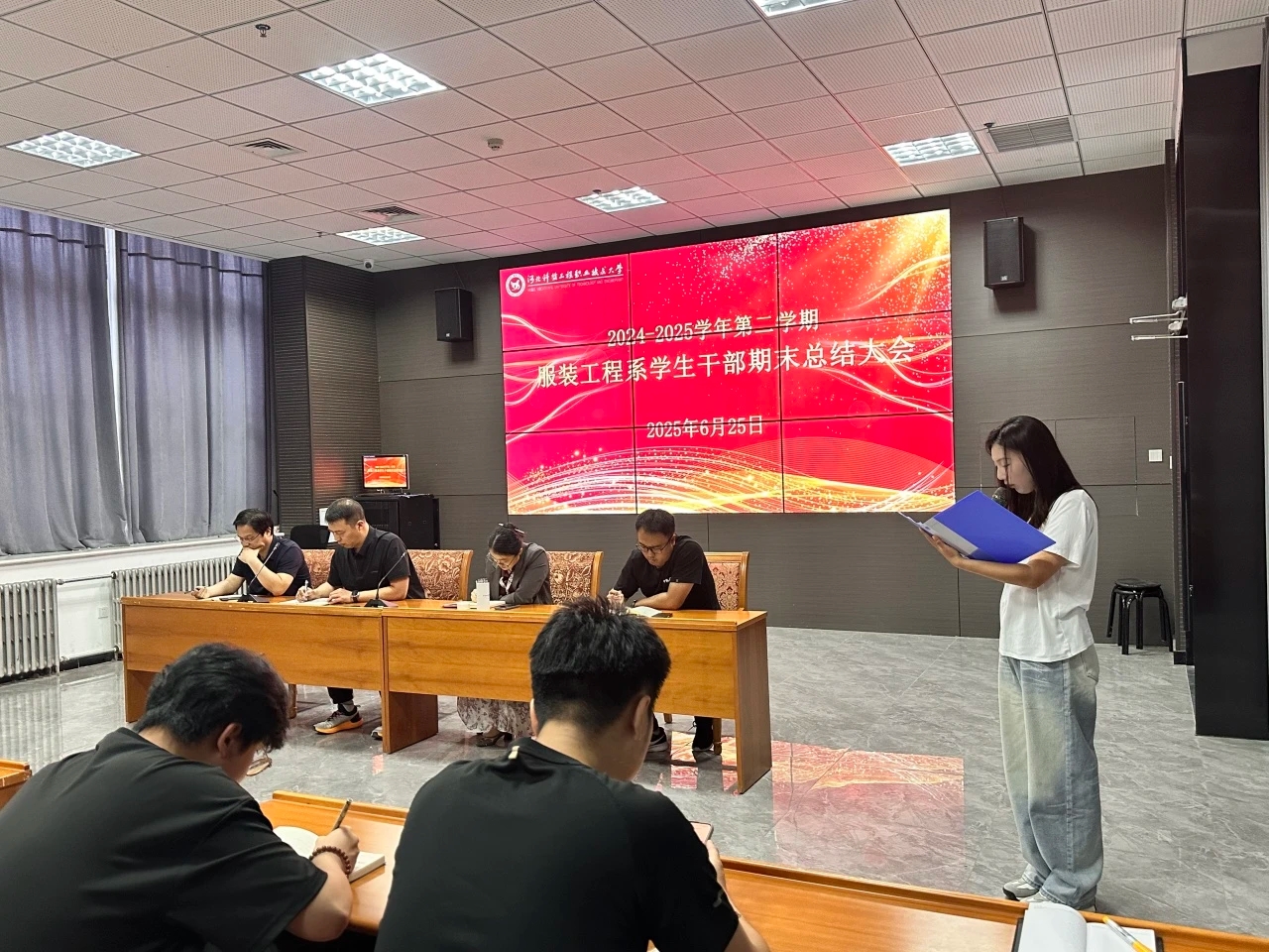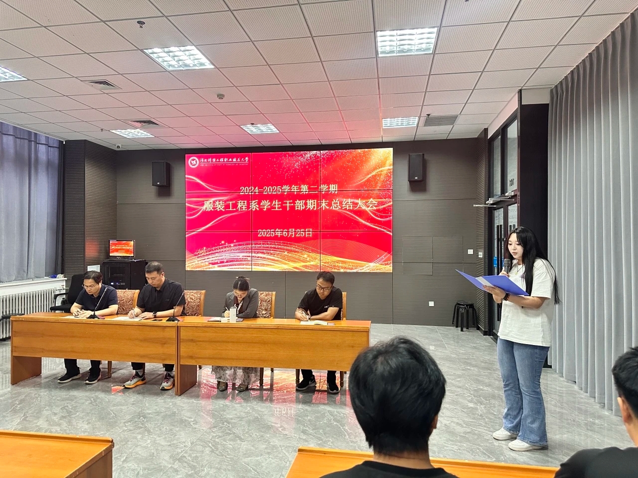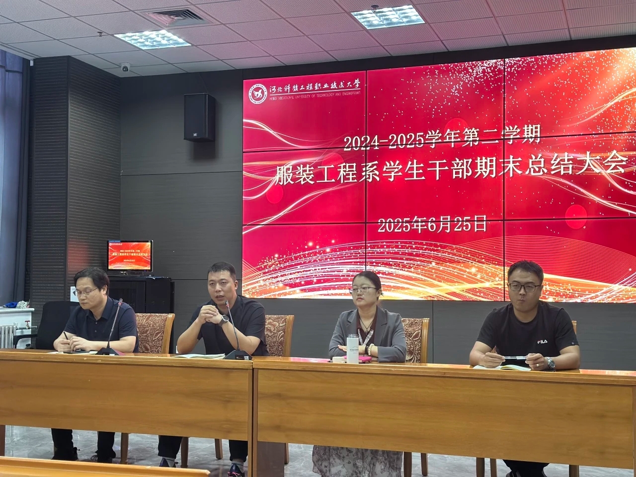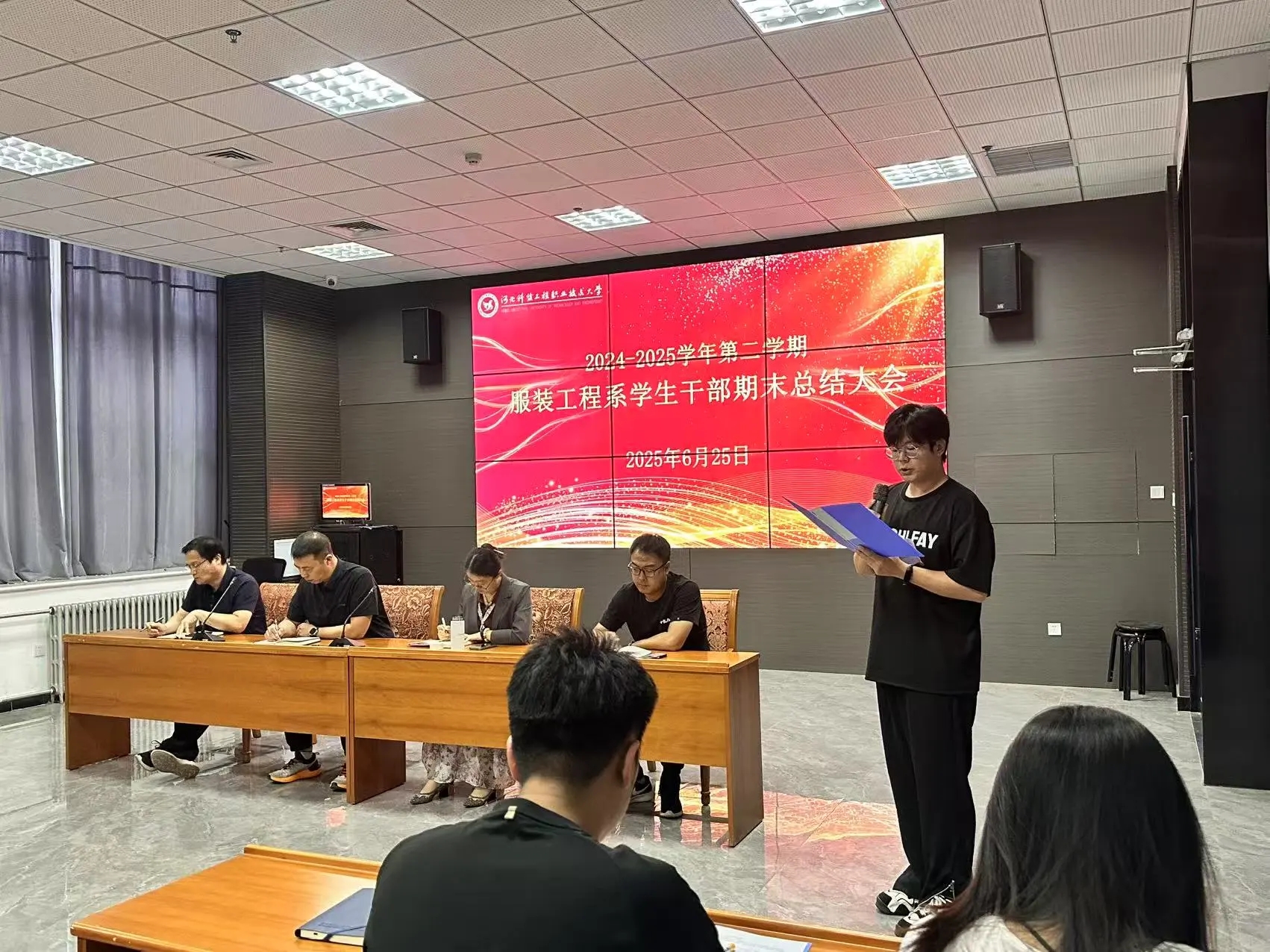 6月25日,服装工程系在创意中心101会议室召开学期末学生干部总结大会,服装工程系党总支书记王振贵、系党总支副书记马晓利、学生管理科科长郑印乐、全体辅导员以及23级、24级学生干部共同参会,会议由郑印乐老师主持。