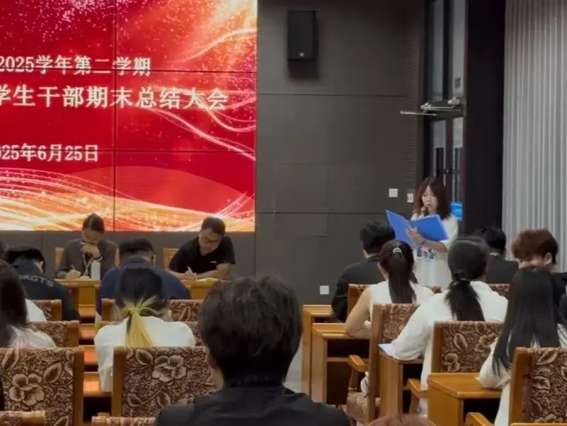 会议最后,郑老师以“实干锻炼能力”寄语全体学生干部。希望大家将总结成果转化为动力,不忘做学生干部的初心,端正品行、担当作为,立足岗位锤炼能力,服务师生、服务系部。同时,要求各团学部门利用暑假规划新学期工作,精心开展具有系部特色的第二课堂活动。