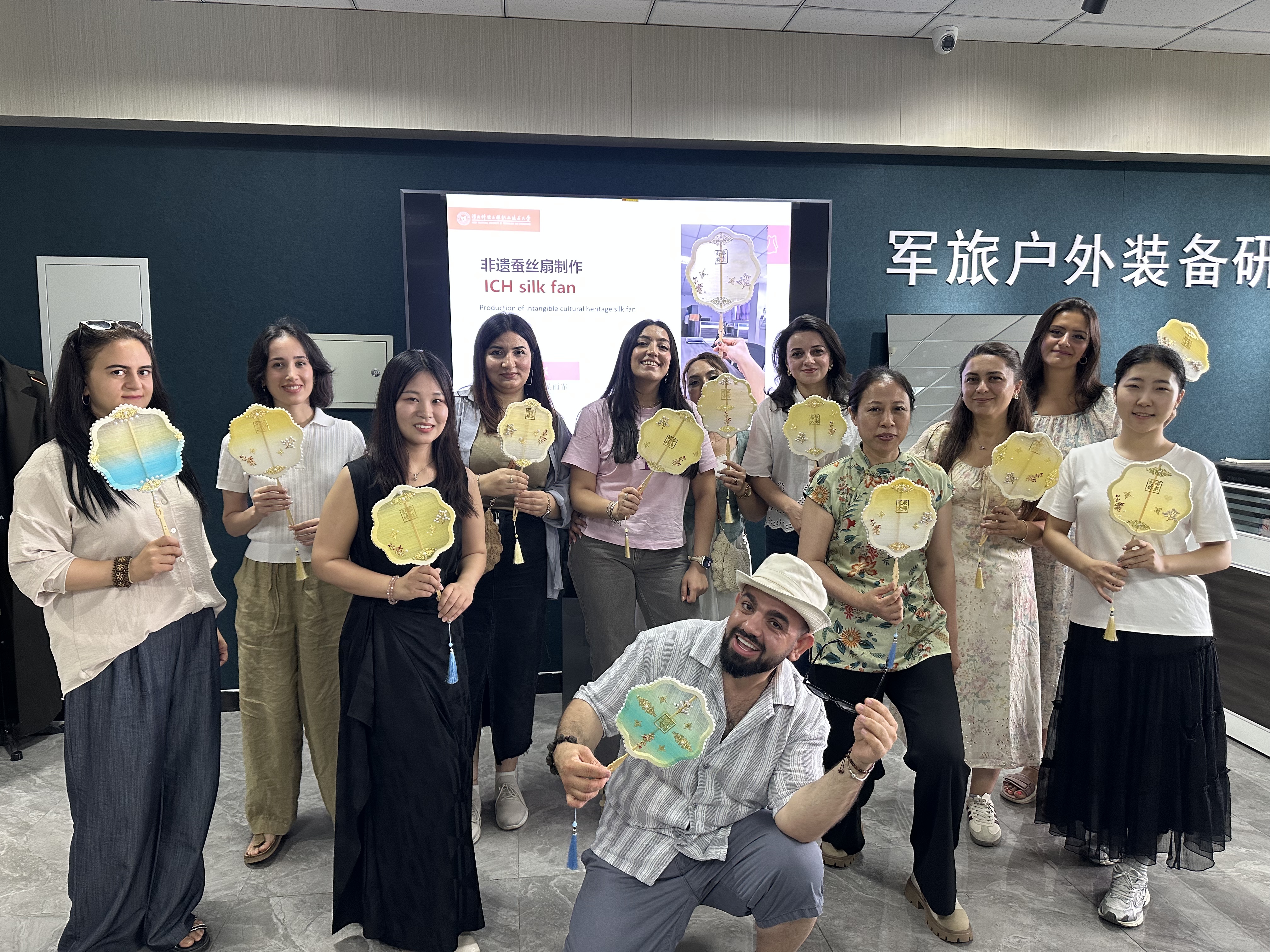 中外教师通力合作,在动手实践中深入交流,不仅感受到传统技艺的独特魅力,也增进了彼此之间的理解与友谊。代表团成员纷纷表示,蚕丝团扇的制作过程令人震撼,中国文化的深厚底蕴给他们留下了深刻印象,此次体验收获颇丰。
