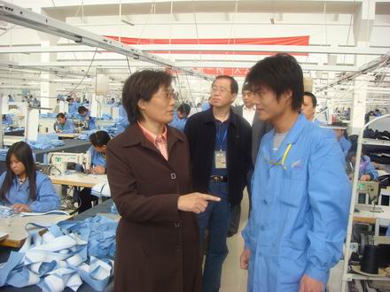 学院领导非常重视此项工作,并在具体实施环节当中给予了大力支持。10月19日,学院刘彩琴副院长、服装工程系范树林主任专程赴际华3502职业装有限公司看望本次实习学生及部分服装、机电的老毕业生,深入了解学生在厂的工作、生活情况,刘彩琴副院长勉励实习学生抓住实习机遇,注重学校教育与企业岗位实际的有机结合,突出岗位育人的实际效果。