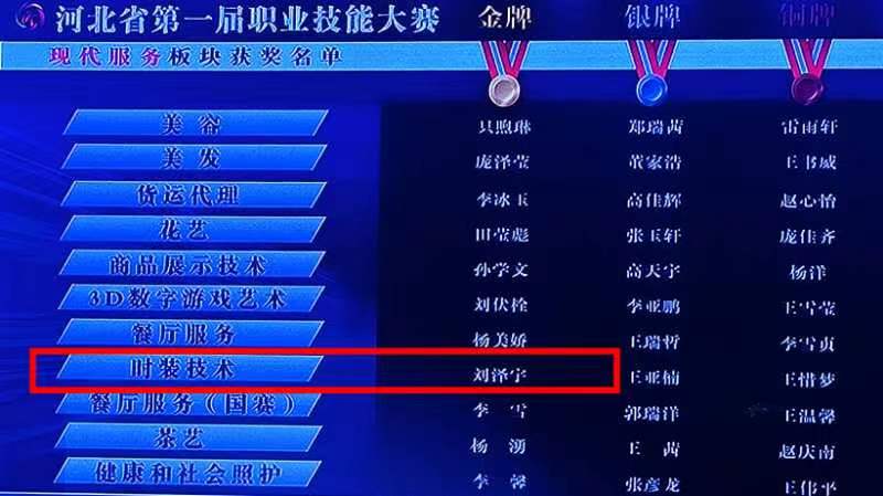 经过激烈的比拼,365官网选手刘泽宇在时装技术项目斩获金奖,并将于9月代表河北省参加在天津举办的中华人民共和国第二届职业技能大赛。
