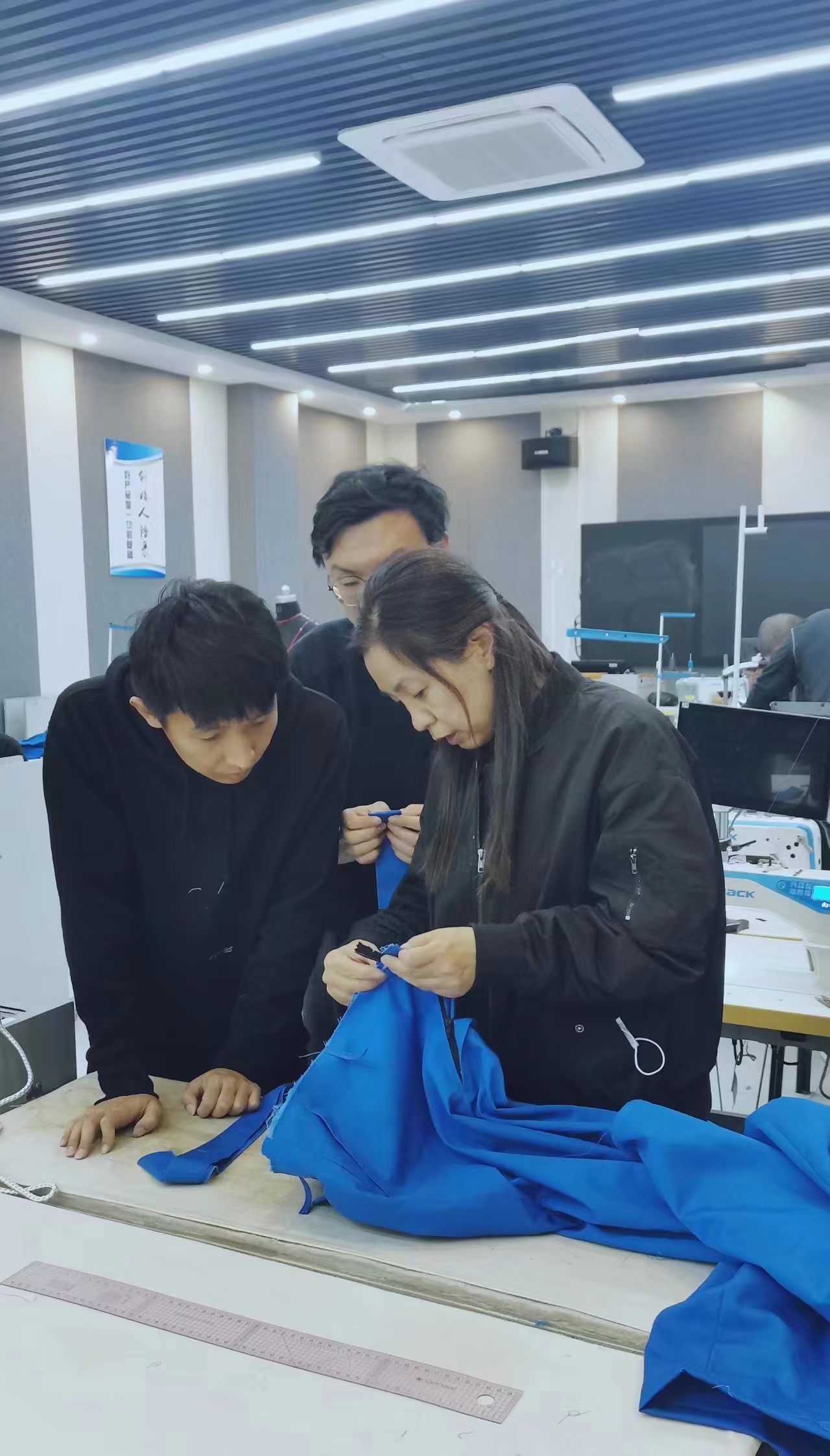 本次培训由服装工程系承办,面向河北春光农业开发有限公司服装生产管理人员,自3月20日举行开班典礼以来,历时40余天,培训包括裤子、衬衫、工装茄克、棉服、针织产品等服种生产工艺、服装CAD、服装模板开发及生产组织与管理、布鞋生产工艺等内容。365官网安排服装工程系骨干教师授课,聘请际华三五四三针织服饰有限公司生产技术部部长王鸿欣、全国抗疫劳动模范阚晓兰、北京领袖乾坤科技有限公司总经理汪欣逸等企业专家结合生产实际进行经验分享。