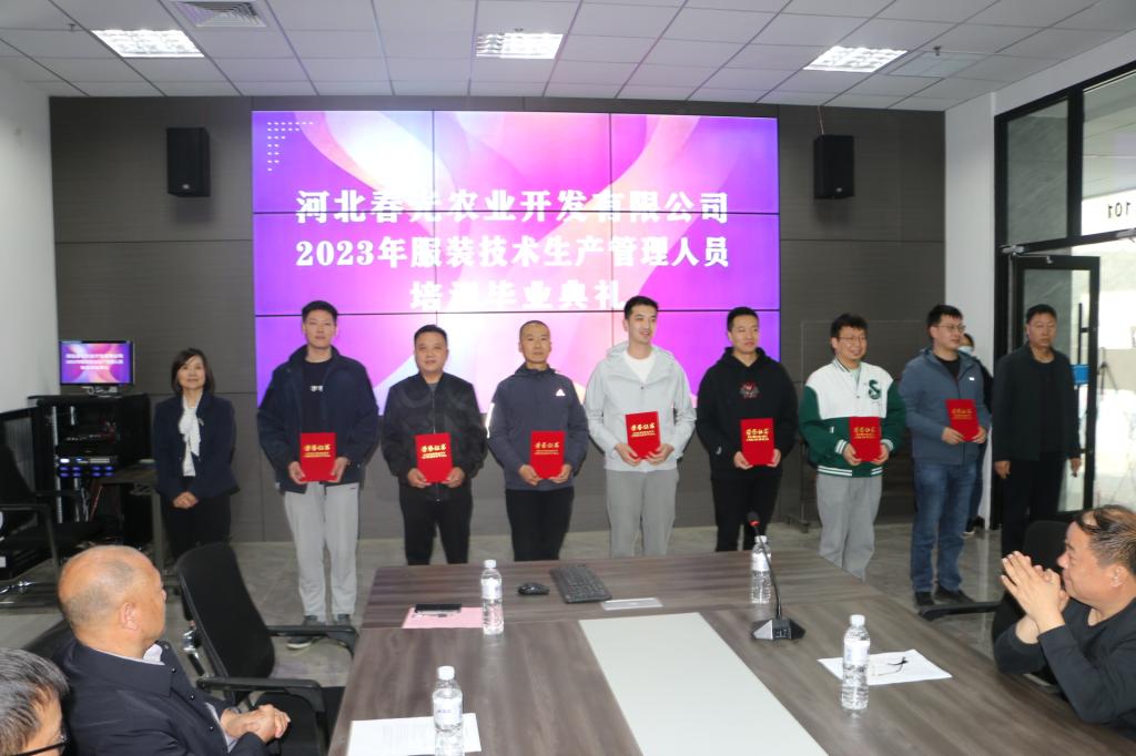 4月27日,服装工程系举办河北春光农业开发有限公司员工生产管理技术培训班毕业典礼。刘卫红副校长、河北春光农业开发有限公司总经理吴国彬及服装工程系领导、任课教师等50余人出席毕业典礼。刘校长代表学校致辞,对河北春光农业开发有限公司的信任和支持表示感谢。公司总经理吴国彬对学校深厚的办学实力,服装工程系的精心准备和老师的辛苦付出给予高度评价,希望双方在更多领域达成长期合作。