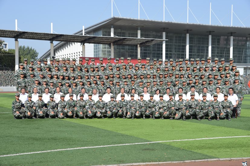 开学典礼在庄重喜庆的气氛中闭幕。随后,学院领导与全体军训教官合影留念。
