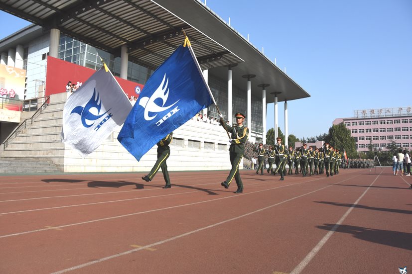 典礼在庄严的国歌声中拉开帷幕,鲜艳的五星红旗在两面校旗的护卫下,随着雄壮的国歌声冉冉升起,高高飘扬在校园上空。升旗仪式结束后,在院国旗护卫队的带领下,2017级新生军训分列式汇报表演正式开始,各系方队在雄壮的军乐声中依次经过主席台,接受学院领导的检阅,5000余名军训新生队列整齐,步伐一致,口号响亮,意气风发,展现出良好的军人素养、严谨的思想作风、奋发向上的精神风貌和朝气蓬勃的青春气息。