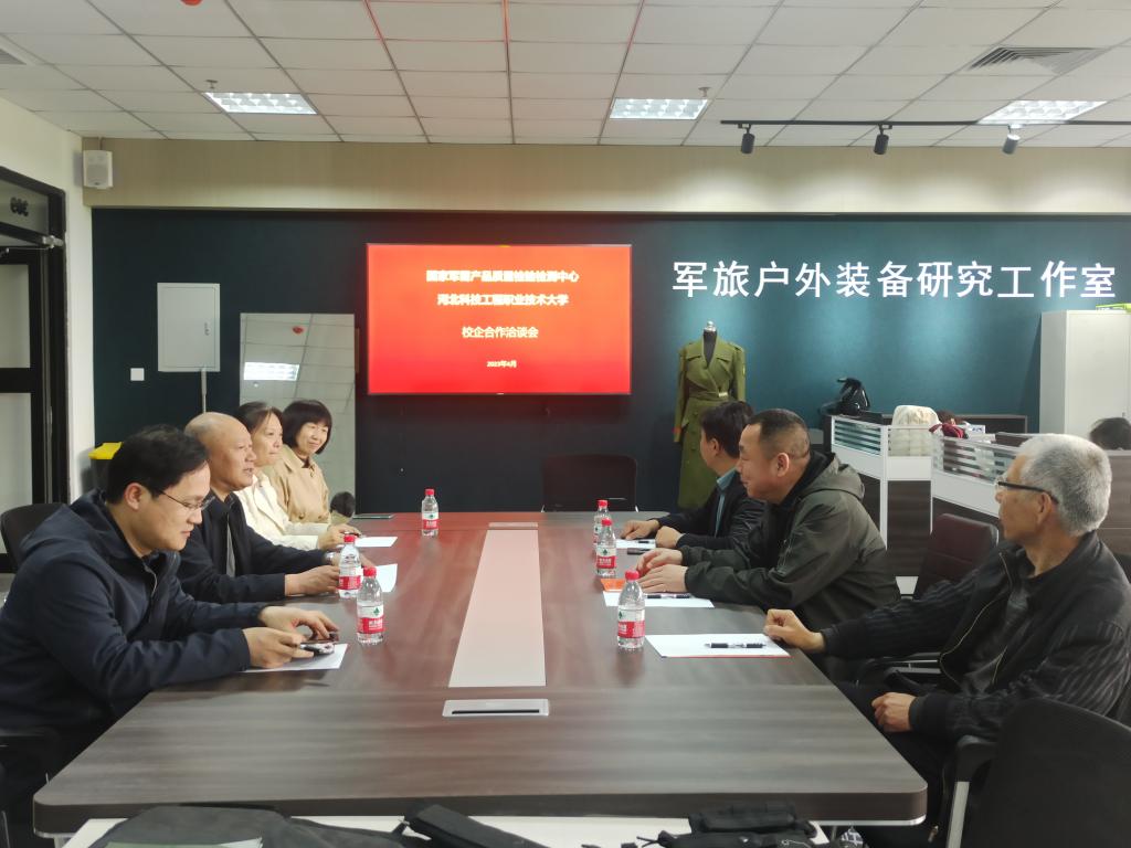 荆鹏慧副总经理指出,国家军需产品检验检测中心作为唯一的国家级军需产品质量监督检验中心,承担了军需被装、鞋靴产品的生产过程质量监督、成品出厂检验、入库产品抽检及产品内在理化检测等职能。希望学校能够培养出更多的高层次京能人才,企业也迫切需要军需产品技术的革新、检验检测人才的更新、校企合作模式的创新。学校目前开设的服装工程技术、服装与服饰设计、时尚品设计三个职业本科专业紧密对接纺织服装行业的人才需求,双方愿意依托工作室教学模式达成人才共育的合作事宜。