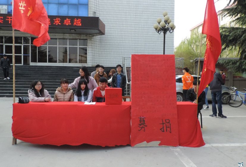李佳成,男,邢台职业技术学院服装工程系服设142班学生。该生勤奋好学,品学兼优。不幸的是,2016年3月该生被查出患有畸形脑淤血,他的家人为了给其治病已交付巨额医疗费,还欠下了十几万元的外债。得知这一情况后,服装工程系于3月22日上午在红星礼堂门口组织募捐活动。病魔也许能夺去人的健康,但绝不能夺取人间真情。此次捐款活动就像一股爱的暖流在学院师生中间涓涓流动,温暖了李佳成及其家人的心,更体现了我院师生乐于助人、乐于奉献的雷锋精神。