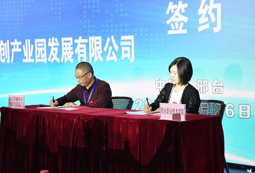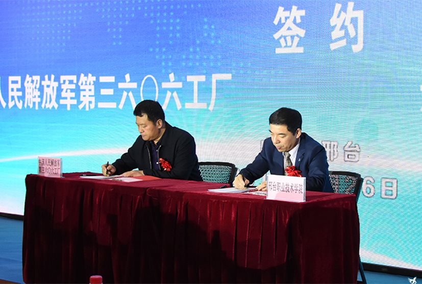 会上,全体联盟成员单位秉承“融合、共享、创新”的共同理念,审议通过了《军民融合职业教育产学研协同发展联盟章程》,成立了联盟第一届理事会领导机构,达成了《邢台共识》,并启动了联盟徽标。我院还分别与中国人民解放军第3606工厂、际华集团股份有限公司、北京中科航天人才服务有限公司、浙江军融科创产业园发展有限公司签订合作协议。
