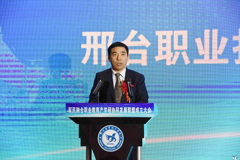会上,王冰海副秘书长致欢迎词,我院李贤彬副院长介绍了联盟的筹备情况,马东霄院长代表联盟理事会理事长单位作工作报告,王廷山副厅长、徐振川局长先后发表讲话,对联盟的成立表示祝贺,对我院在军民融合领域的工作给予高度评价,希望学院发挥“邢台模式”高职品牌,建设军民融合特色高职,希望联盟在国防和经济建设中架设高职教育资源融通桥梁,勇于创新、开拓军民融合新渠道,立足冀南,辐射京津冀,放眼全国,在推进军民融合深度发展方面做出新的贡献。