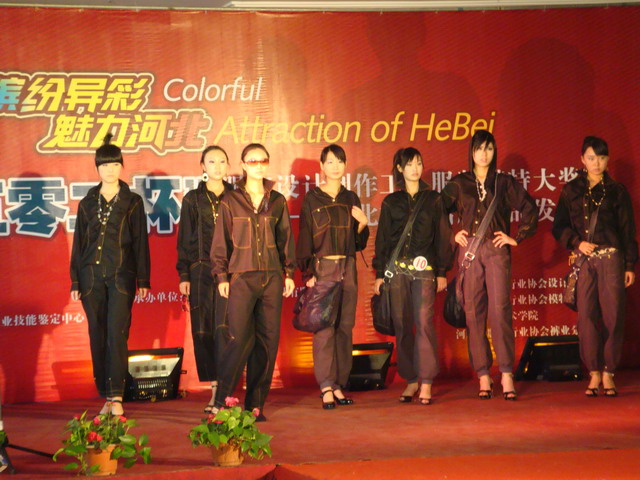 11月2日,在河北卓达服装产业园举办了“三五零二”杯2008年河北省“服装设计制作工”和“服装模特”大奖赛颁奖典礼暨河北裤业名牌产品发布会。我院服装工程系服装表演专业学生为我省多家裤业企业展示了其最新的名牌产品,表现出了较高的表演水平,博得了阵阵喝彩。
