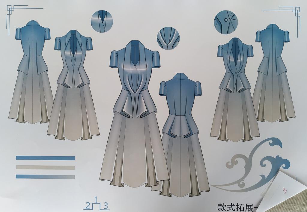 本次比赛为团队赛,每个参赛团队两人,设计类与工艺类选手各一名,两名选手分别完成模块一和模块二的考核内容,最终两人成绩相加,得分高者胜出。比赛考核内容对标中职组国赛,设置原创服装设计、电脑款式拓展设计、纸样设计与立体造型、成衣CAD结构设计与推版制作、裁剪与样衣制作五个部分,分别检验参赛选手的设计创作、设计表现、服装立体造型、样板制作和样衣制作等应用能力、团队协作能力和职业素养。