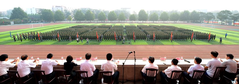 开学典礼在庄重喜庆的气氛中闭幕。随后,学院领导与全体军训教官合影留念。