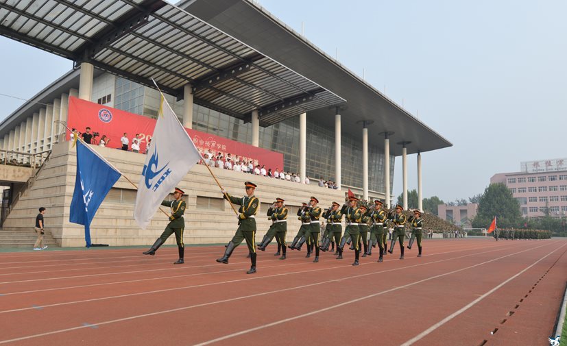 典礼在庄严的国歌声中拉开帷幕,鲜艳的五星红旗在两面校旗的护卫下,随着雄壮的国歌声冉冉升起,高高飘扬在校园上空。升旗仪式结束后,在院国旗护卫队的带领下,2016级新生军训分列式汇报表演正式开始,各系方队在雄壮的军乐声中依次经过主席台,接受学院领导的检阅,5000余名军训新生队列整齐,步伐一致,口号响亮,意气风发,展现出良好的军人素养、严谨的思想作风、奋发向上的精神风貌和朝气蓬勃的青春气息。