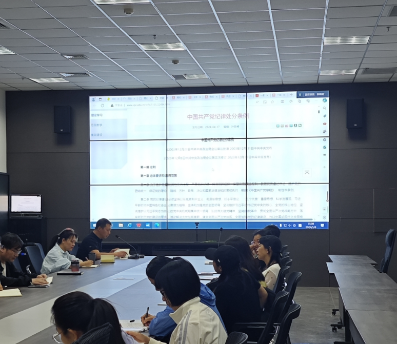 5月8日下午,服装工程系党总支在创意中心101召开党纪学习教育大会,会议以线上线下相结合的方式进行。党总支全体党员参加学习。
