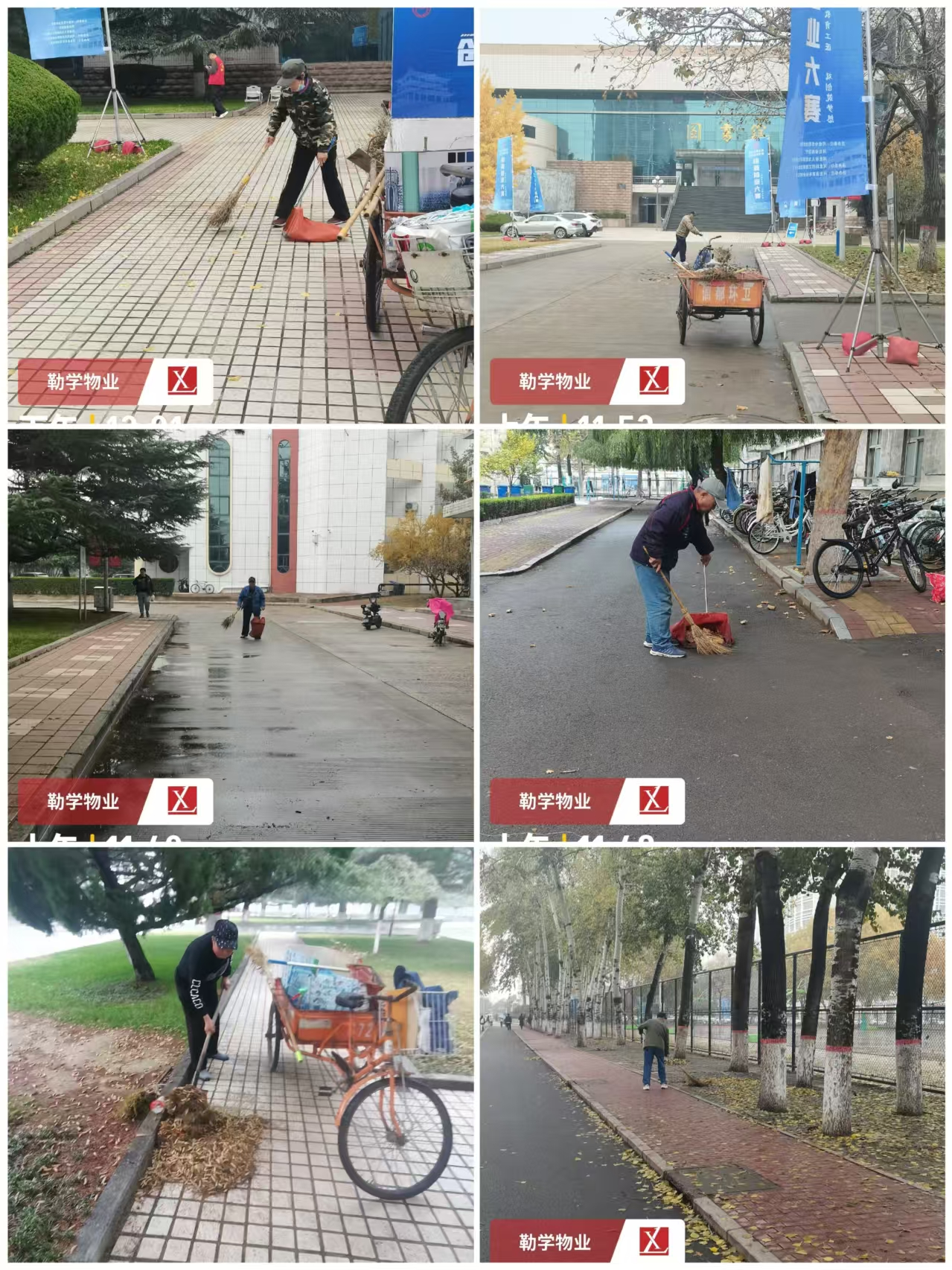 外围物业对校园道路、公寓区教学区角落卫生、垃圾场、绿化带等区域进行彻底清扫,对卫生死角中的土堆、碎石、砖块、杂草、泡沫箱等进行全面清理。绿化工人开展树木保温及涂白相关工作,以有效防治病虫害。同时对新种植的草坪和绿植浇灌冻水,修剪了绿植的新芽和造型,美化了校园环境。