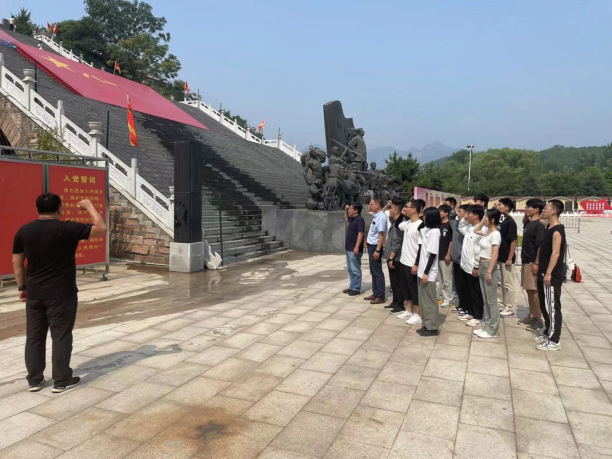 走进宽阔的展览大厅,聆听抗大的故事,感悟抗大精神。历史是最好的教科书,馆内记录着抗大曲折的建校史和艰苦卓绝的战斗史,陈列着大量图片和实物。驻足在一件件铭刻着历史印记的文物面前,透过文字介绍,循着时间脉络,像是在亲临那自力更生、团结奋进的激情岁月。通过抗大学员奔赴延安、熔炉淬炼、抗大总校在太行山上等板块,详细了解了抗大的发展历程和敌后办学的丰功伟绩。讲解员声情并茂的叙述,师生仿佛置身于战火纷飞的年代,与敌人展开了一次次殊死的战斗和顽强斗争。参观结束后,在纪念馆前,面对庄严的党旗,全体党员紧握右拳,重温了入党誓词。