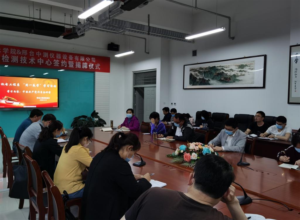 为深入贯彻市直工委《市直机关(单位)周一夜学制度》通知要求,按照学院党委组织部统一安排,机电工程系党总支高度重视,精心安排,于2020年5月11日19:00-21:00,利用“线上+线下”双线形式,在机电楼304会议室,组织全体教工党员认真进行集中夜学。