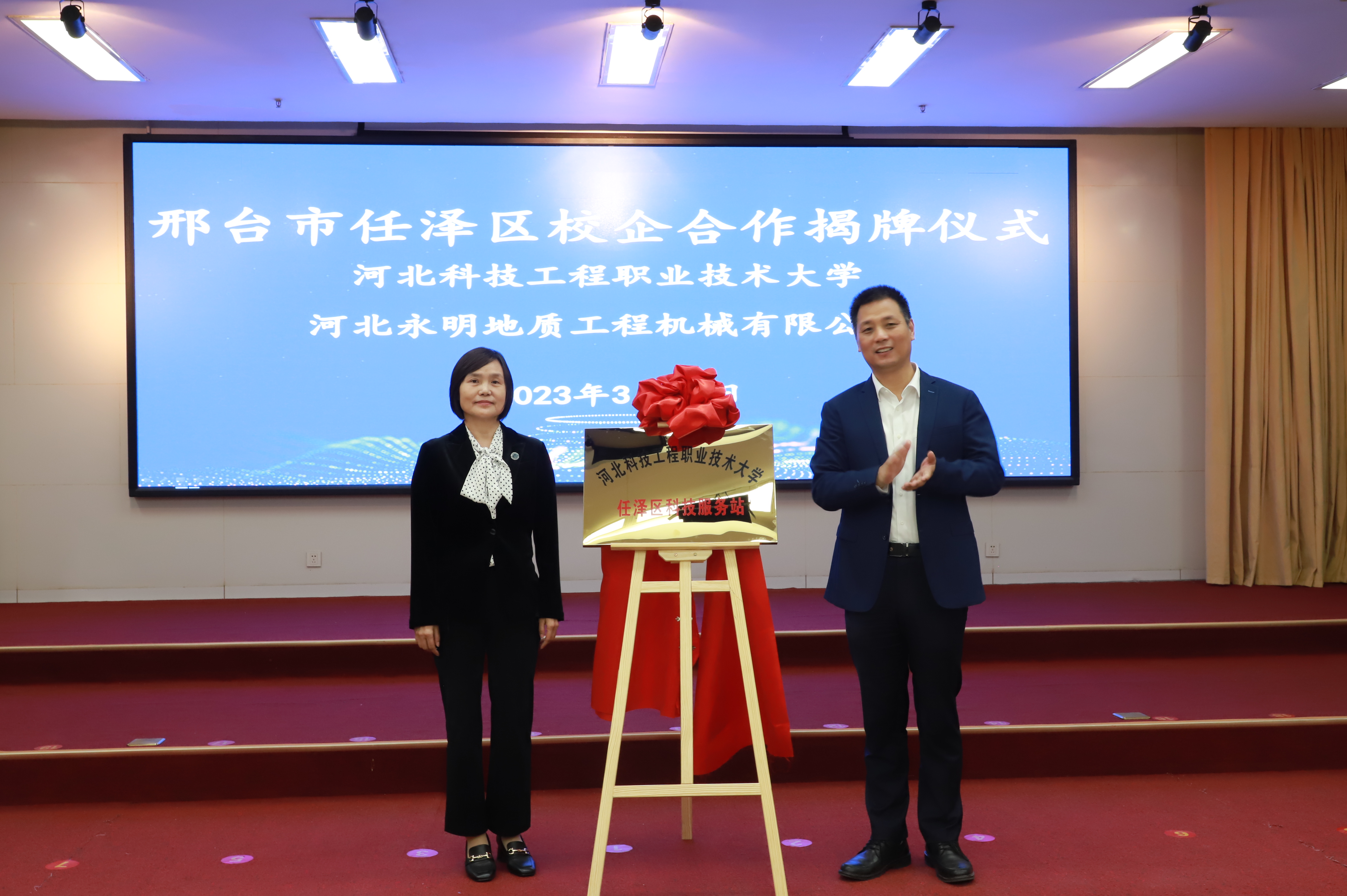 作为365官网访企拓岗重要活动之一,365官网一行首先参观了河北永明地质工程机械有限公司总部厂区并进行了深入交流。在任泽区政府会议大厅,区委书记杨蕾、365官网党委书记刘彩琴各自为合作交流致辞,并观看了任泽区两大产业集群介绍视频,双方领导共同为365上市公司官网产学研基地揭牌;副校长刘卫红、永明公司董事长吴永周共同为365上市公司官网大学生实习基地揭牌;副校长刘卫红、任泽区发改局(科工局)局长郭泽硕共同为365上市公司官网任泽区科技服务站揭牌。党委书记刘彩琴与永明集团董事长吴永周签署了校企合作协议,副校长刘卫红和任泽区常务副区长周振鹏签署了政校战略合作协议。区委书记杨蕾为刘彩琴教授、刘卫红教授等365官网12名教师颁发了“任泽智库”高级专家和任泽区招才引智大使聘书。