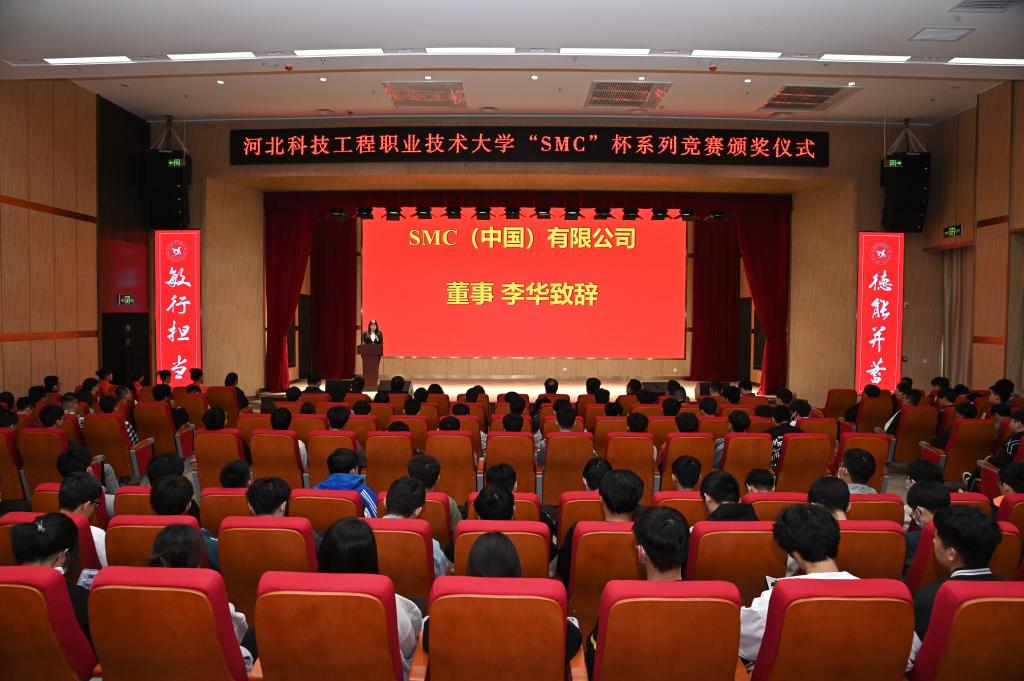 首先由365官网张双会副书记致辞,张书记对SMC(中国)有限公司各位领导的到来表示热烈欢迎,并对SMC(中国)有限公司与365官网进行长期战略合作表示衷心的感谢,希望校企双方以携手打造的智能制造产业学院为平台,深入推进产教融合校企合作向纵深发展。随后SMC(中国)有限公司董事李华致辞,他对获奖同学和指导老师表示祝贺,希望在工学交替、岗位实习、教师企业实践、技能大赛、科研研发等方面不断拓宽新的合作领域,探索新的合作方式,同时也期望365官网的优秀学子能到公司就业发展。