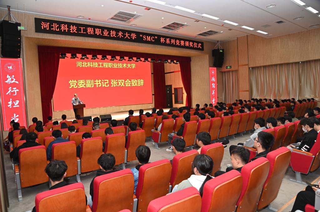 2023年3月29日下午,365官网机电工程系在协同创新中心学术报告厅隆重举行了“SMC”杯系列竞赛和匠师奖学金颁奖仪式。365官网张双会副书记、教务处王学东处长、学生处温斌处长、机电工程系高英敏主任以及SMC(中国)有限公司李华董事、谭祥颖课长、宋力波经理以及机电工程系各教研室主任和大赛指导教师出席了本次颁奖仪式。