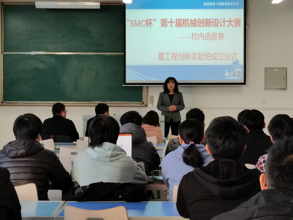 为了培养学生创新能力与综合设计能力,加强学生动手能力培养和工程实践训练,提高学生针对实际需求通过创新思维进行机械设计和工艺制作等实际工作能力,机电工程系于12月6日举办了第十届“SMC杯”机械创新设计大赛。