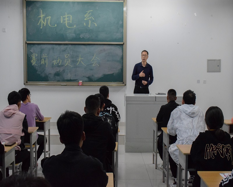 为了做好赛前准备和备战工作,保证运动会的正常召开,10月21日,机电工程系于机电楼401教室召开校运会动员大会。参加本次大会的有赵玉清副书记、陈旭老师以及全体运动员。