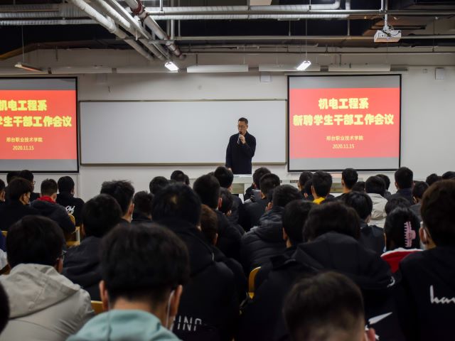 为进一步提高学生干部自我管理、自我教育的能力,增强学生干部队伍整体素质,2020年11月15日,机电工程系于机电楼521教室召开了新聘学生干部工作会议。出席本次会议的有机电工程系党总支赵玉清副书记、各年级辅导员老师、第41届学生会成员及20级班级学生干部。