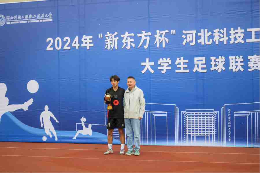 首先,在小组比赛阶段,我系队员在绿茵场上激烈拼抢、精彩射门,成功取得小组赛的胜利。半决赛中,我系球队奋力拼搏、一鼓作气,成功进入决赛,将队伍的默契与实力完美展现出来。在最后的决赛中,我系球员们迅速展开激烈拼抢,不断寻求机会突破防线,成功以2:0成绩赛场夺魁,为全系赢得了荣誉。最终,我系获得此次“新东方杯”大学生足球联赛冠军,学生米佳一荣获“最佳球员”、“最佳射手”,学生刘彤荣获“最佳门将”。