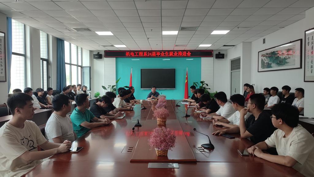 2024年5月8日下午17点,机电工程系在机电楼304召开2024届毕业生就业推进会,机电工程系书记马雪芳、毕业班辅导员王亚炜、史海涛和部分在校毕业生代表参加了会议。