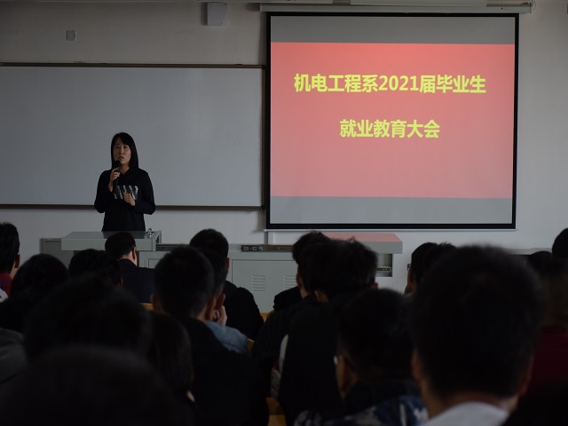 为贯彻学院就业工作精神,推进2021届毕业生顺利实习就业,机电工程系于2020107日召开了2021届毕业生教育大会。本次会议由陈旭老师主持,机电工程系赵玉清副书记、闫健娜老师出席本次教育大会。