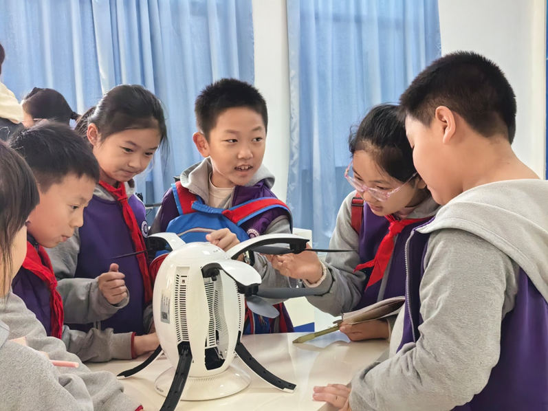 活动伊始,师生们率先走进科普基地3D打印体验区。机电系专业教师详细讲解了增材制造技术原理,孩子们仔细观察设备内耗材的熔融、叠加过程,随着迷你版“东方红一号”卫星、哪吒等动漫人物在打印机中逐渐成型,孩子们直观感受到了3D打印技术的创造魅力。无人机展区内,机电系专业教师通过实物演示与原理讲解,介绍了无人机在农业植保、应急救援等领域的应用,孩子们认真记录并踊跃提问,在互动中解锁航空科技知识;机械臂体验区更是人气高涨,在学生志愿者的耐心引导下,小朋友们亲手操控机械臂完成抓取、移动等简单动作,在实践中感受智能装备的精准操控魅力,现场互动氛围热烈。