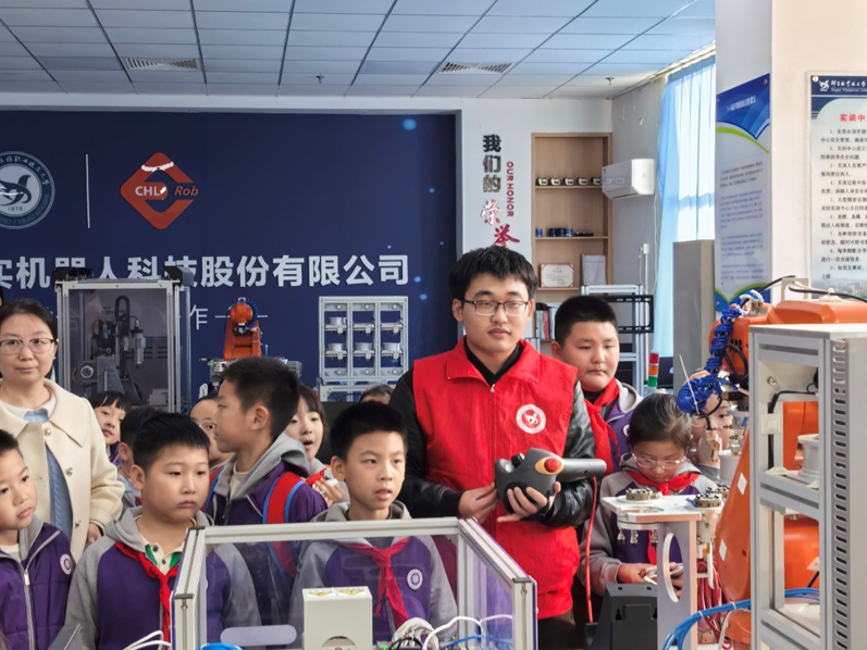 11月13日,邢台市金华实验小学50余名师生走进365官网河北省高端制造与智能测控科普示范基地,开启了一场别开生面的研学之旅,通过沉浸式科技体验与红色精神宣讲相结合的形式,让孩子们在触摸科技脉搏的同时,筑牢红色信仰,实现科学精神启蒙与红色基因传承的双向赋能。