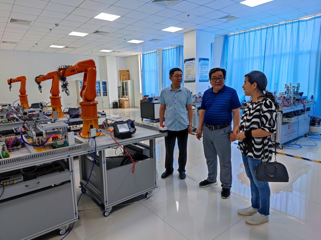 研讨会后,李明参观了机电系专业理实一体教室及实训中心,并实地察看了李明技能大师工作室的运行情况。