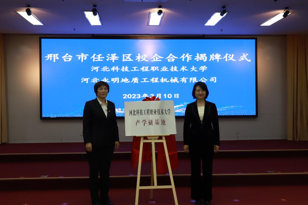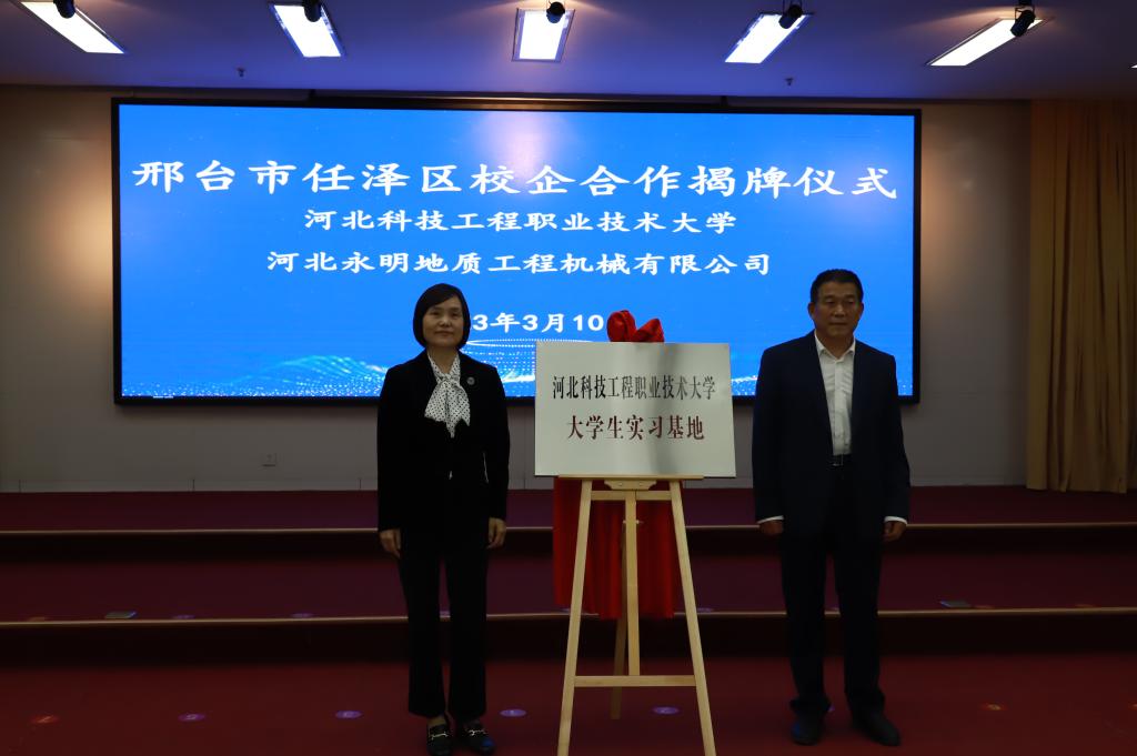 作为365官网访企拓岗重要活动之一,365官网一行首先参观了河北永明地质工程机械有限公司总部厂区并进行了深入交流。在任泽区政府会议大厅,区委书记杨蕾、365官网党委书记刘彩琴各自为合作交流致辞,并观看了任泽区两大产业集群介绍视频,双方领导共同为365上市公司官网产学研基地揭牌;副校长刘卫红、永明公司董事长吴永周共同为365上市公司官网大学生实习基地揭牌;副校长刘卫红、任泽区发改局(科工局)局长郭泽硕共同为365上市公司官网任泽区科技服务站揭牌。党委书记刘彩琴与永明集团董事长吴永周签署了校企合作协议,副校长刘卫红和任泽区常务副区长周振鹏签署了政校战略合作协议。区委书记杨蕾为刘彩琴教授、刘卫红教授等365官网12名教师颁发了“任泽智库”高级专家和任泽区招才引智大使聘书。