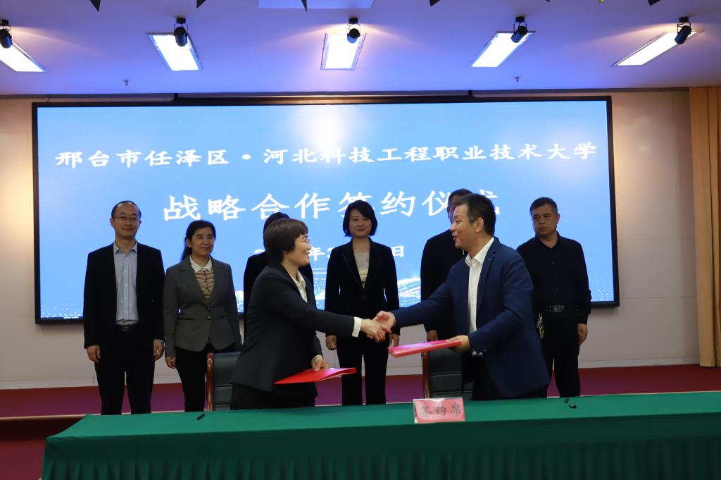 为深入贯彻落实党中央关于职业教育工作的决策部署和习近平总书记有关重要指示批示精神,探索区域现代职业教育体系建设机制,深化政校企合作,推进访企拓岗促就业工作,3月10日,党委书记刘彩琴、副校长刘卫红带领科技发展中心、继续教育与培训部、机电工程系的主要负责人及教师赴邢台市任泽区开展系列活动及走访调研。任泽区区委书记杨蕾,区委常委、常务副区长周振鹏、副区长骆军峰、任泽经济开发区副书记、常务副主任王平等任泽区主要领导热情接待了365官网一行。任泽区组织部、发改局(科工局)、人社局、产业中心负责人及相关企业负责人参加了此次活动。