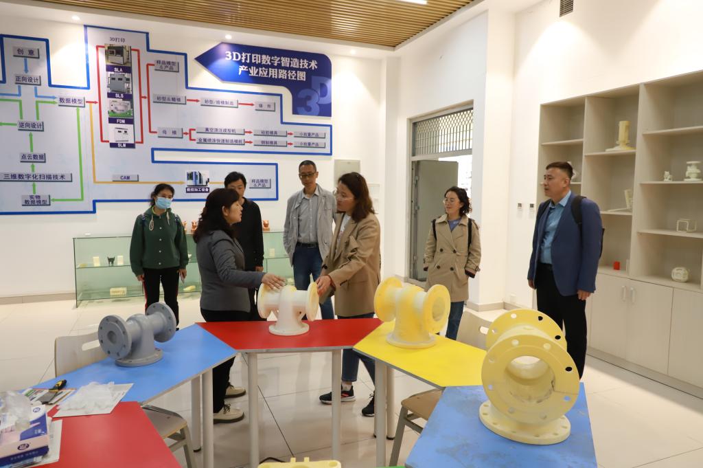 曾敏一行首先参观了365官网智能制造技术中心,然后双方进行了坦诚的交流。交流会上,高英敏对山西职业技术学院一行来访表示欢迎,介绍了系部各专业建设情况与当前职业本科办学情况,双方围绕专业人次培养模式改革、课程开发、师资队伍建设、实习实训基地建设、社会服务能力建设等方面进行了重点交流,曾敏对我系在专业群建设和高水平实训基地取得的成效给予高度评价,表示此次交流活动对该校的双高专业建设和职业本科建设方面大有裨益。