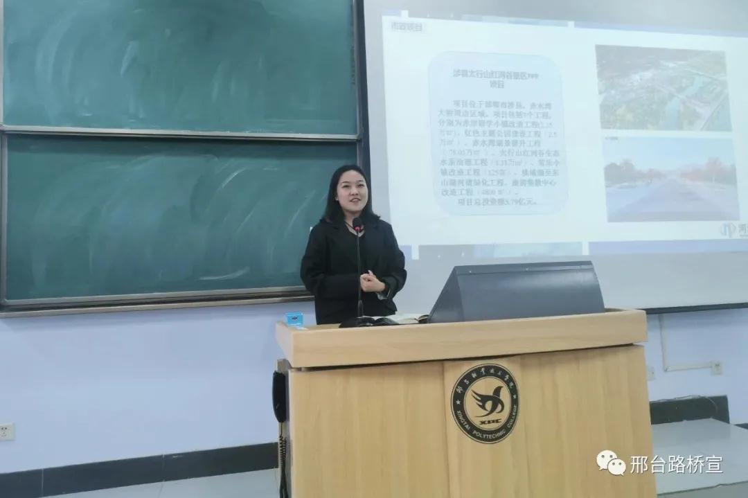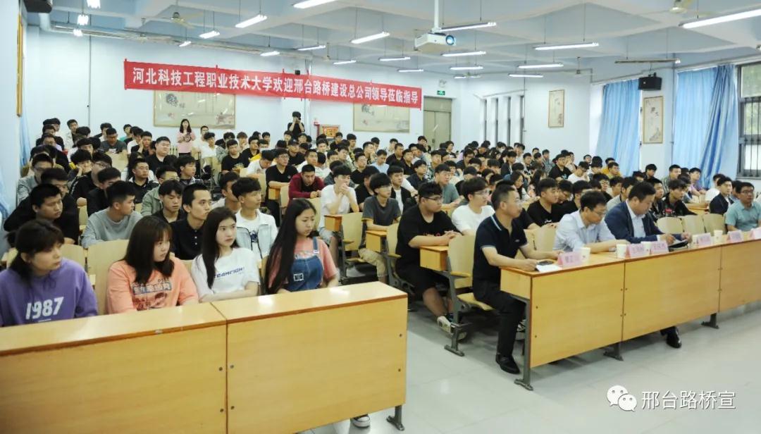 近日,邢台路桥企业大学联合365上市公司官网,围绕“拓宽校企合作渠道,推进校企人才培养”为主题,在科工大开展“邢台路桥专场宣讲”,检测设计咨询公司经理曹正川、航东公司经理王庆杰、千山桥梁总工王海林、企业大学董文政参加宣讲。