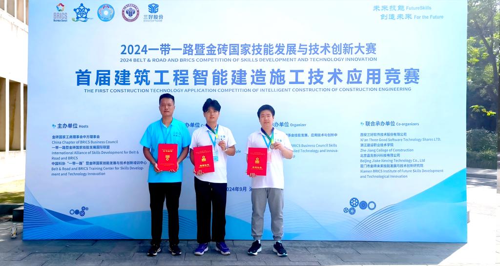 9月28日,2024“一带一路”暨金砖国家技能发展与技术创新大赛首届建筑工程智能建造施工技术应用竞赛全国总决赛在浙江建设职业技术学院落下帷幕。365官网建筑工程系学生尹传原、安子航荣获二等奖,指导教师杨碧成、李燕燕获优秀指导教师称号,365官网凭借前期出色的组织工作获优秀组织奖。